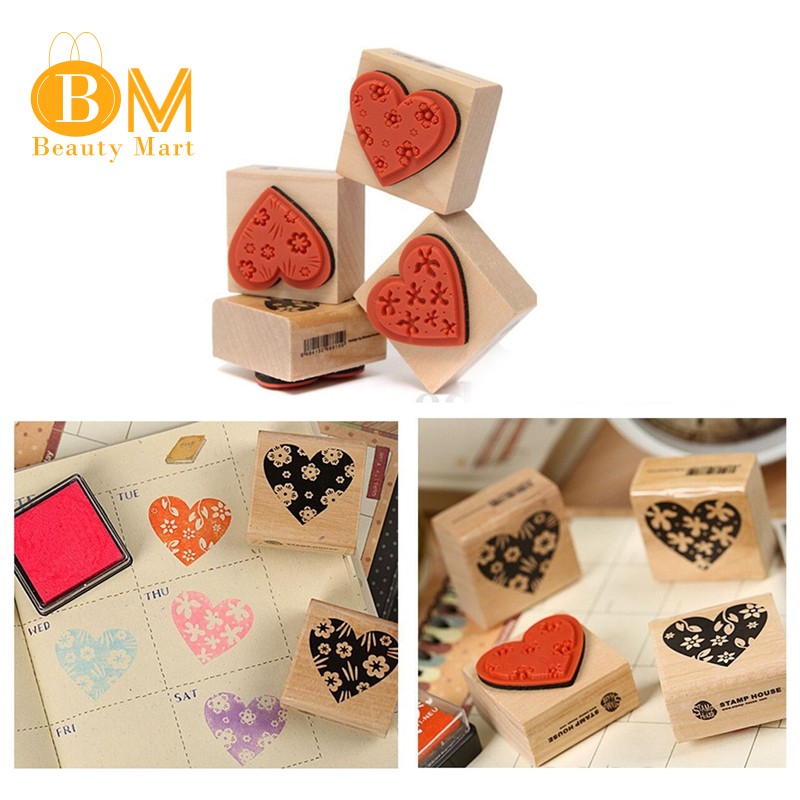 4pcs Diy Love Heart Flowers Diary Scrapbook Decoration Wooden