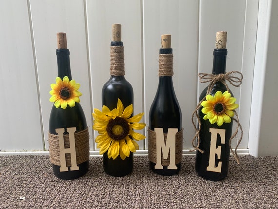 Rustic Decorative Wine Bottles With Sunflowers Home Etsy