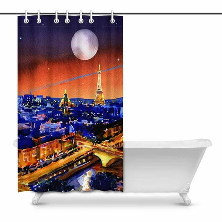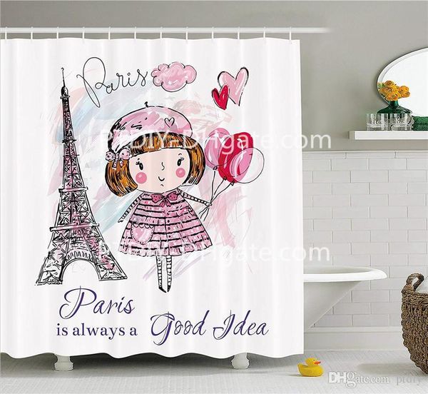 Paris Eiffel Tower Design Shower Curtain Hooks Bathroom Decor Tub