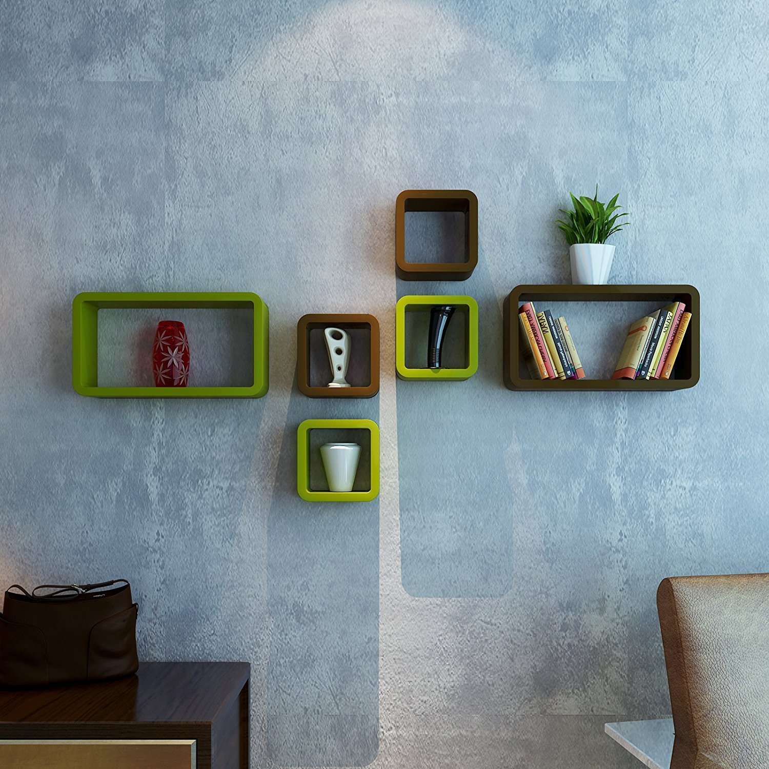 Encore Decor Wall Shelf Set Of Six Cube Rectangle Wall Rack