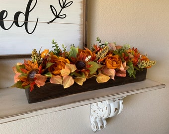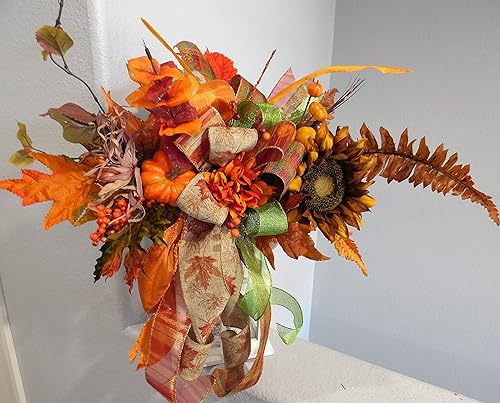 Fall Decor Table Centerpiece With Leaves And Pumpkins A