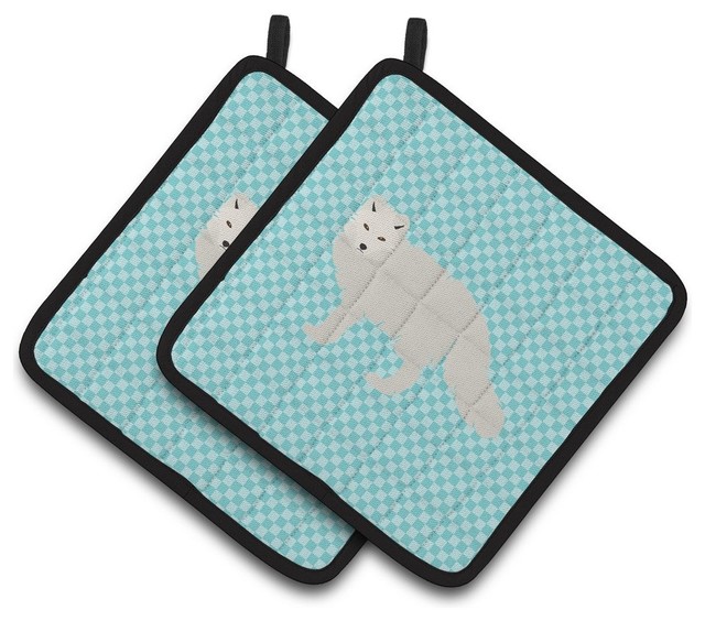 White Arctic Fox Blue Check Pair Of Pot Holders Rustic Oven