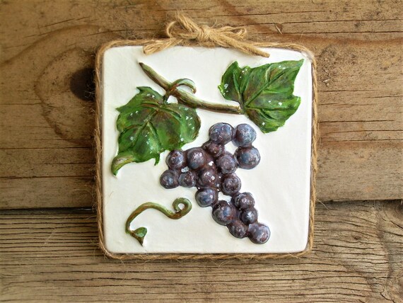 Unique Blue Grapes Hand Painted Clay Tile Decor Grape Decor Etsy