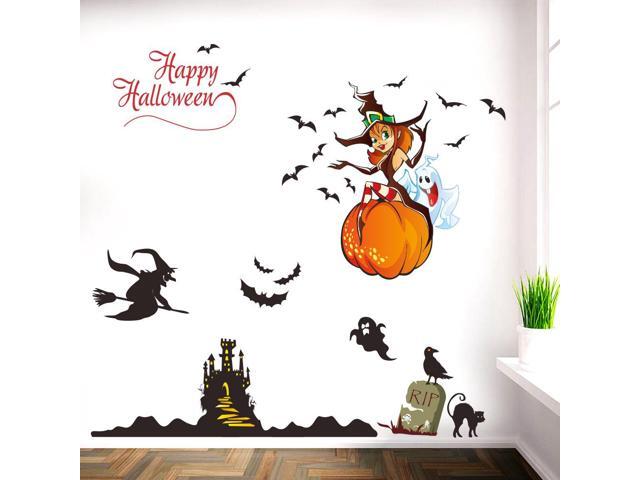 Halloween Decorations Witch Bats Stickers Removable Pvc Decals For