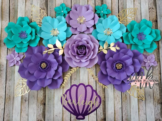 Mermaid Set 12 Pc Flowers Large Paper Flowers Little Mermaid
