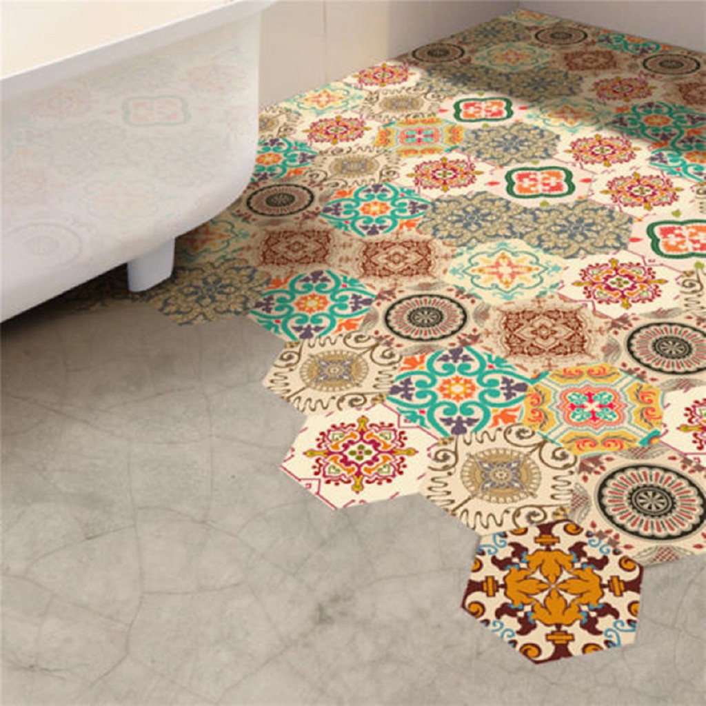 Cg 10pcs Boho Wall Tile Stickers Self Adhesive Floor Decal