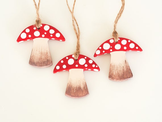 Set Of 3 Mushroom Decorations Clay Mushroom Ornaments Etsy