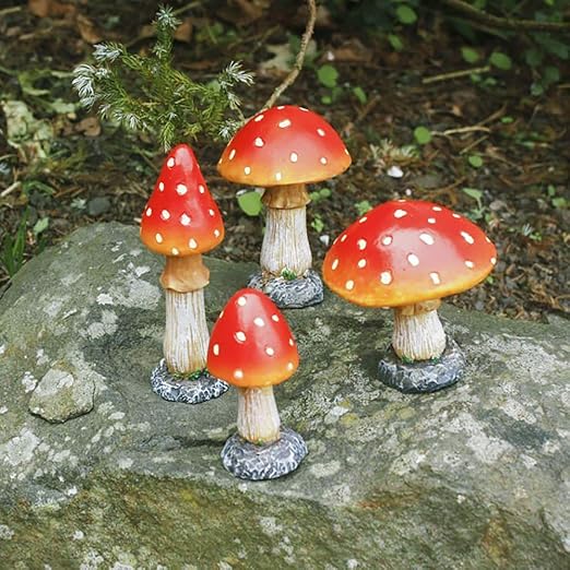 Mini Resin Mushroom Toadstool Garden Ornaments Gnomes Potted