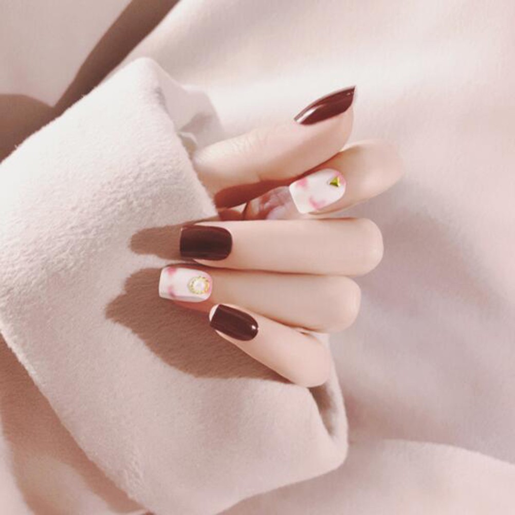 24 Wine Red Fake Nails Art Tips False Full Cover Nail Decor