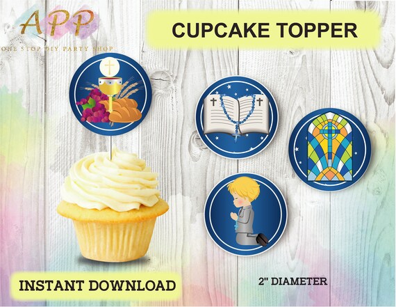 Boy Navy Communion Cupcake Toppers Stickers Labels Navy Etsy