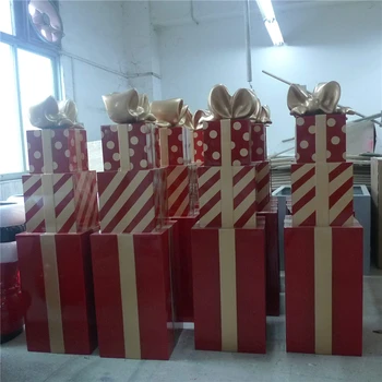 Large Size Outdoor Christmas Decorations Stack Gift Boxes Statue
