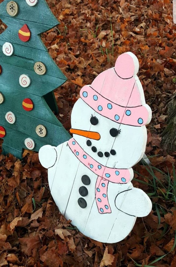 Pink Pallet Snowman Pallet Snowman Female Snowman Outdoor Etsy