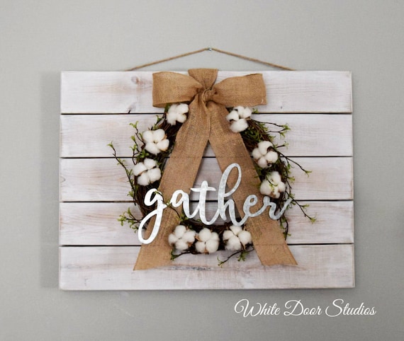 Farmhouse Pallet Wall Decor With Cotton Wreath And Etsy
