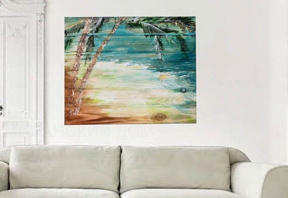 Wood Pallet Wall Art Pallet Wood Art Beach Beach Palmtree Etsy