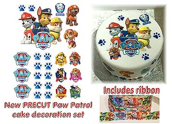 Precut Icing Paw Patrol Cake Decoration Set Ribbon Easy Peel