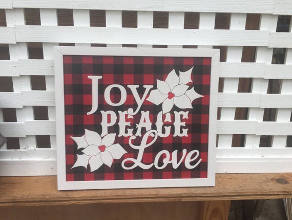 Joy Peace Love Wood Sign Buffalo Plaid Sign Christmas Quotes Etsy