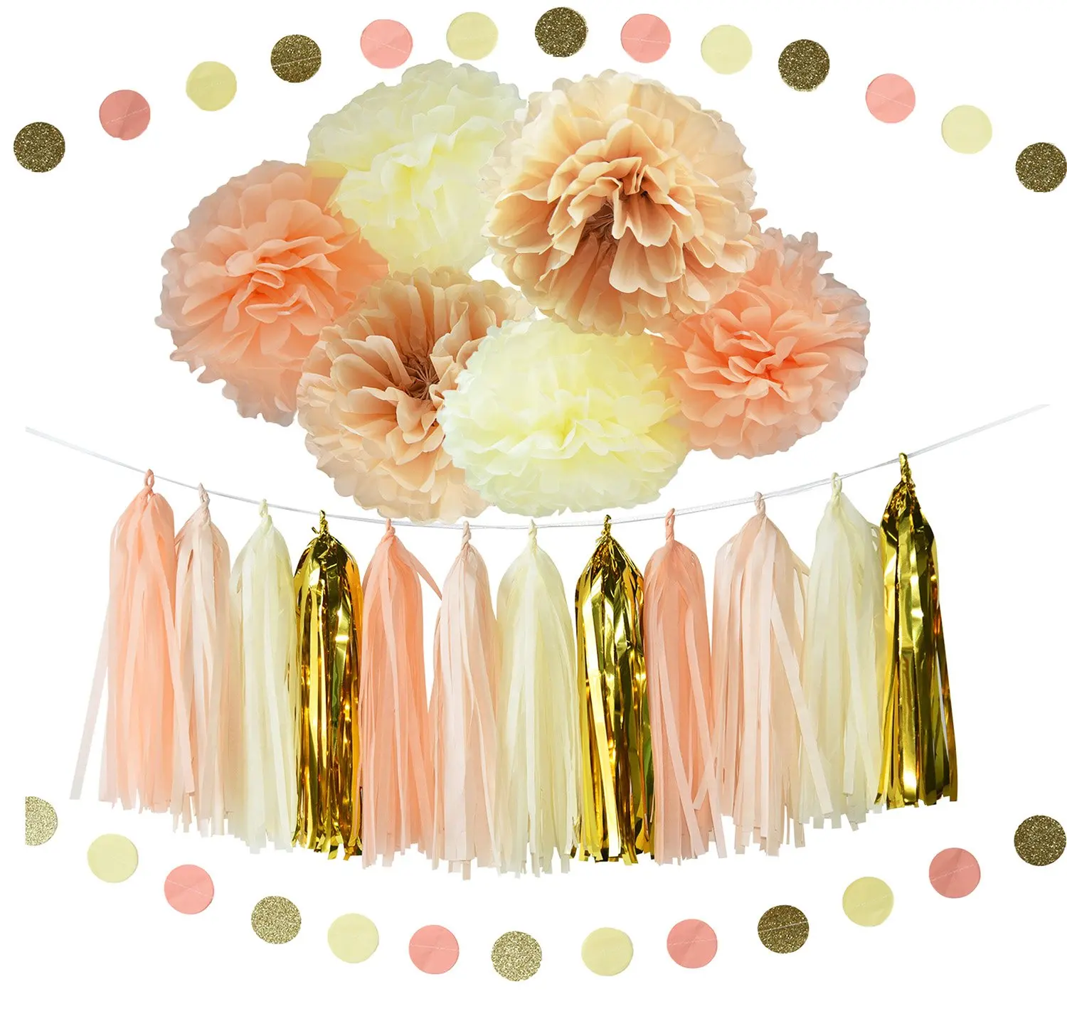 Pgp Pink Pom Set 10 8 6 Inch Pink Peach White For Wedding Baby