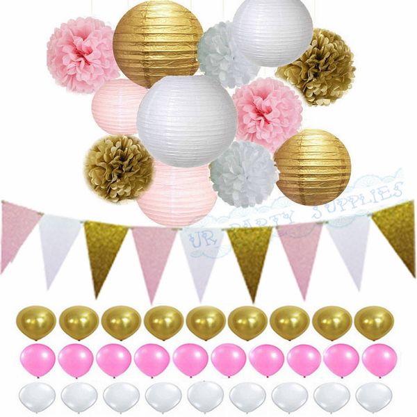 2020 Pink Gold Party Package Glitter Banner Balloon Lantern Baby