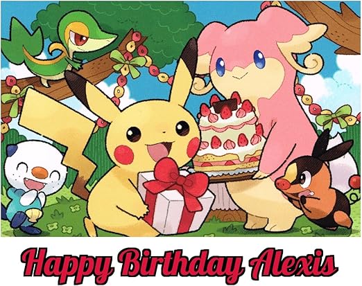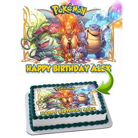 Pokemon cake topper birthday party decoration personalised custom name fabulous edible icing great for kids boy girl 5 6 7 year old easy to use icing professional stars 5 cartoon characters. Theres cake plates cups napkins and table covers to buy separately or all in one kit.