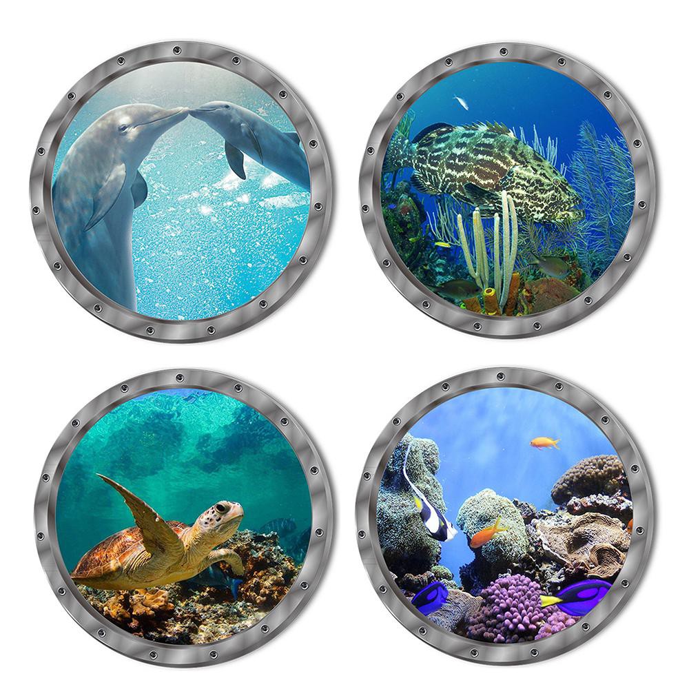 3d Ocean Sea Animals Porthole Views Wall Sticker Pvc Mural Decal