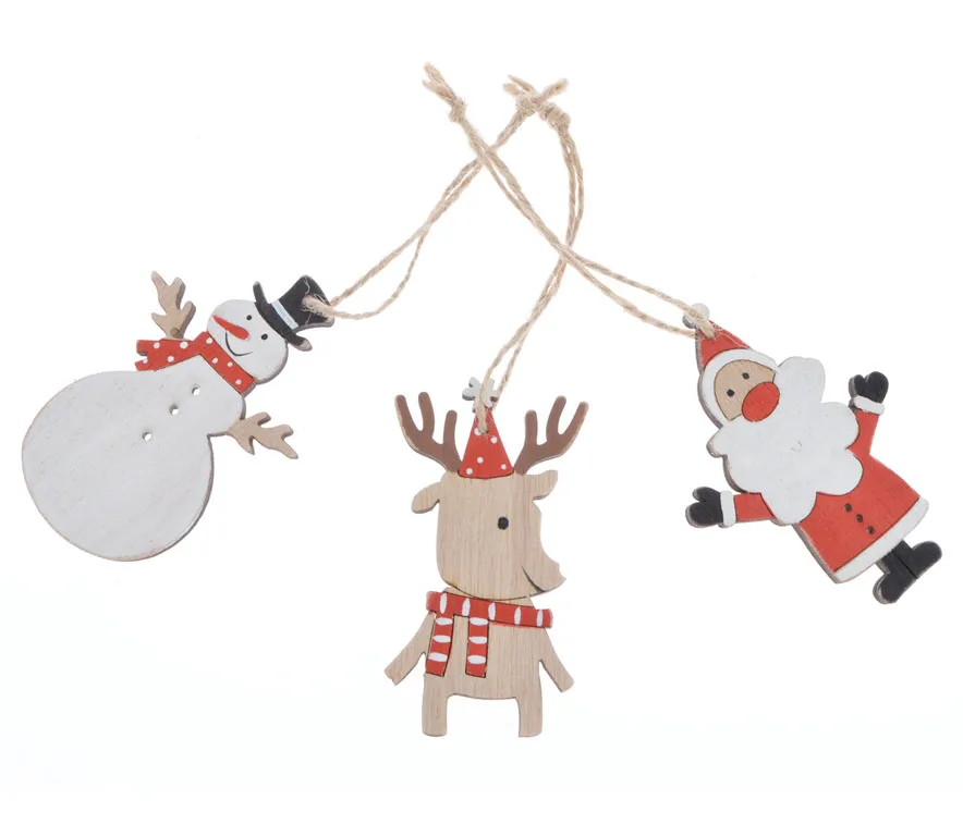 Wooden Santa Snowman Reindeer Ornaments Christmas Tree Hanging