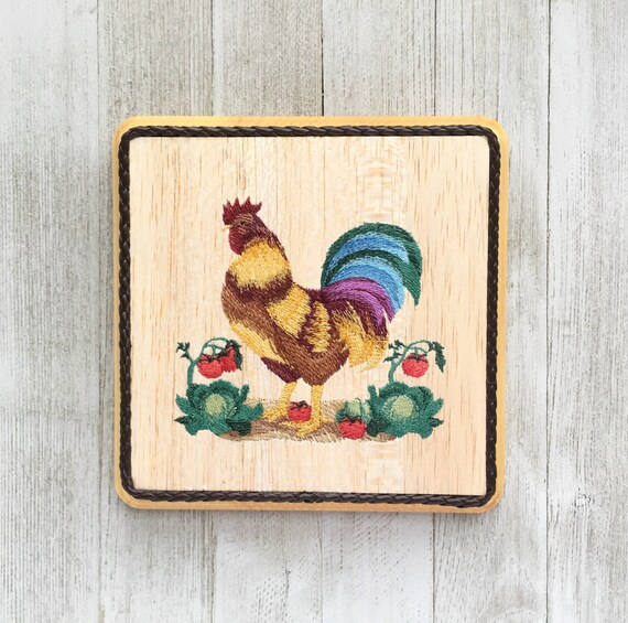 Farmhouse Kitchen Rooster Decor Balsa Wood Embroidery Art Etsy