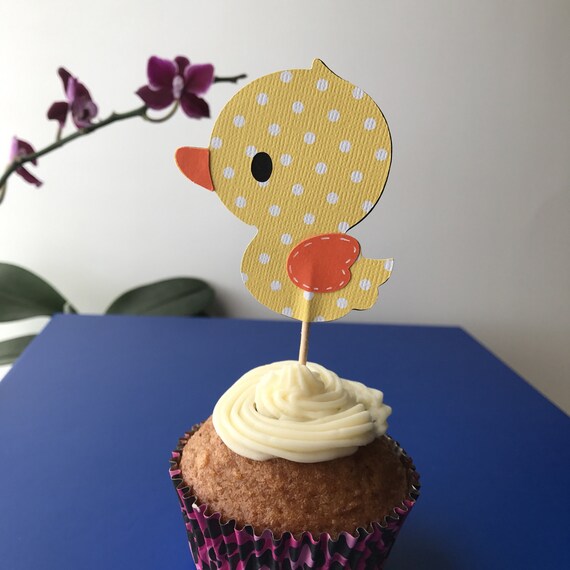 Set Of 12 Rubber Ducky Cupcake Toppers Rubber Ducky Baby Etsy