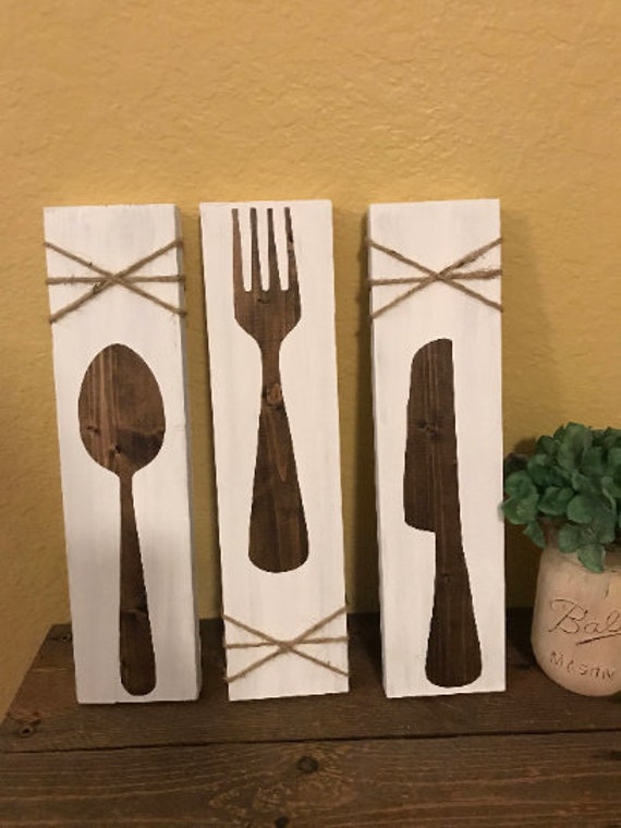 Rustic Kitchen Kitchen Wall Art Fork Knife Spoon Kitchen Etsy