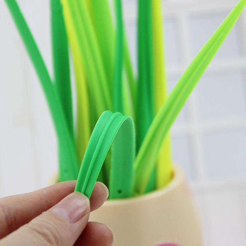 6pcs Green Silicone Grass Style Gel Pen School Office Decor