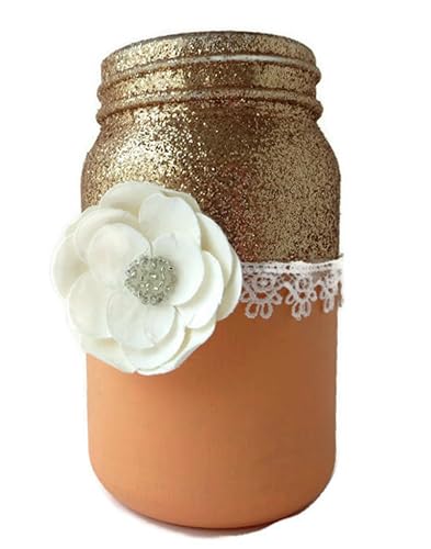 Amazon Com Peach And Gold Mason Jar Centerpiece Shabby Chic Jar