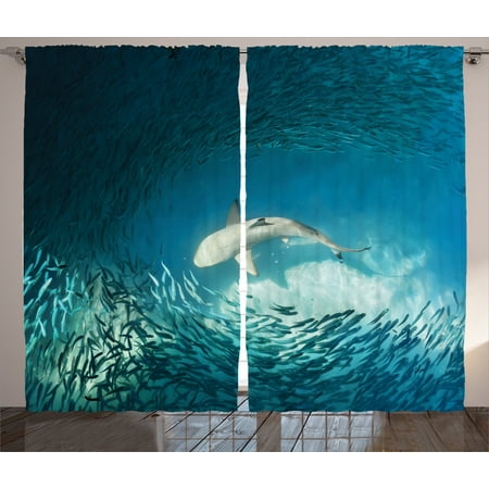 Fish Curtains 2 Panels Set Shark And Small Fish In Ocean