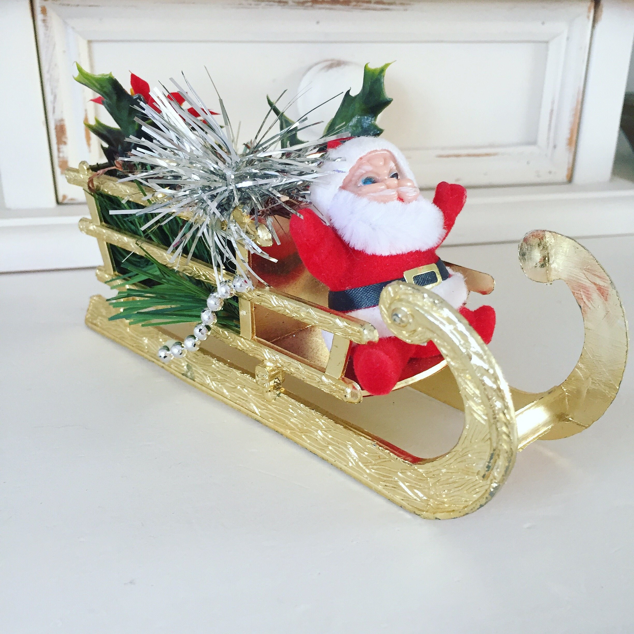 Vintage Christmas Santa Sleigh Retro Decoration Flocked Etsy