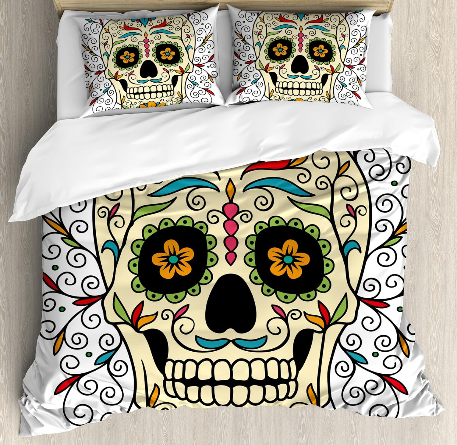 Amazon Com Ambesonne Sugar Skull Decor Duvet Cover Set King Size