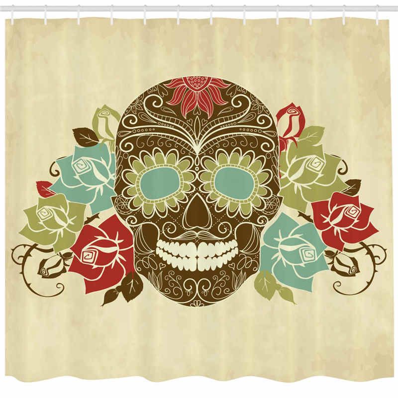 2020 Sugar Skull Decor Shower Curtain Skull And Roses Colorful