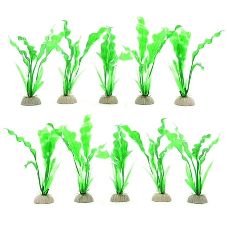 10pcs Green Plastic Aquarium Fish Tank Water Grass Leaves Plants