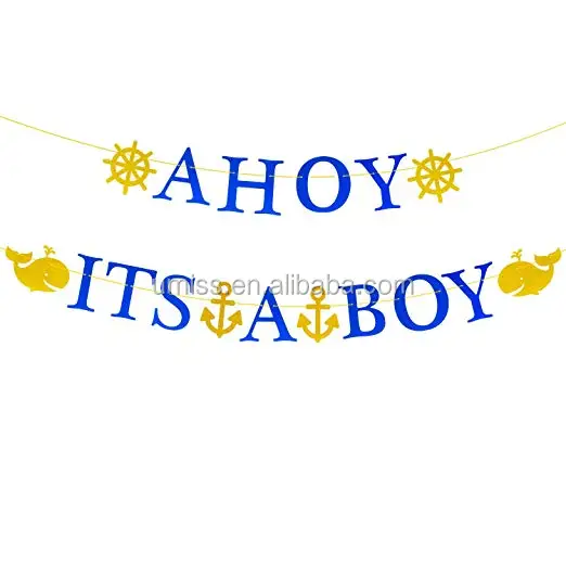 Umiss Paper Amazon Hot Sale Ahoy Its A Boy Banner Nautical Themed
