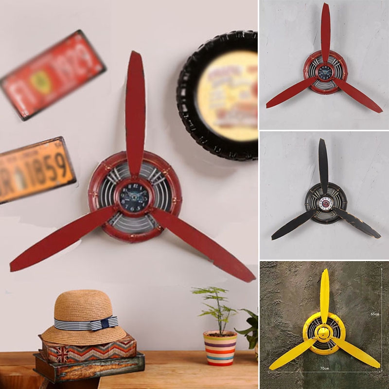 Retro Industrial Air Plane Propeller Wall Clock Home Ornaments Art