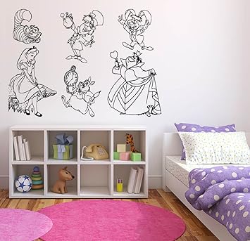 Alice In Wonderland Wall Clock Kids Room Decor Home Vinyl Art