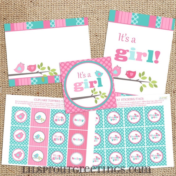 Aqua Pink Bird Printable Baby Shower Decorations Lil Sprout