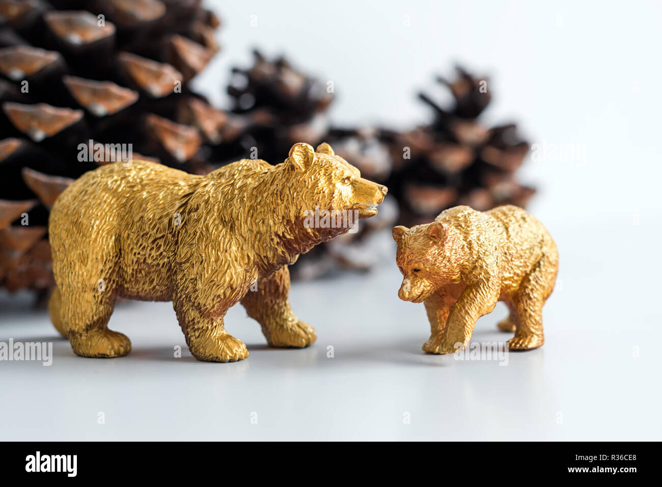 Golden Christmas Decorations Bear Figures Models Toys Pine