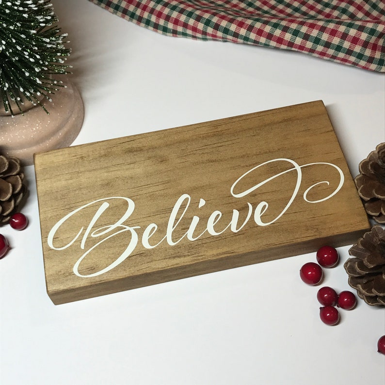 Believe Sign Christmas Decor Shelf Sitter Wood Signs Gift Etsy
