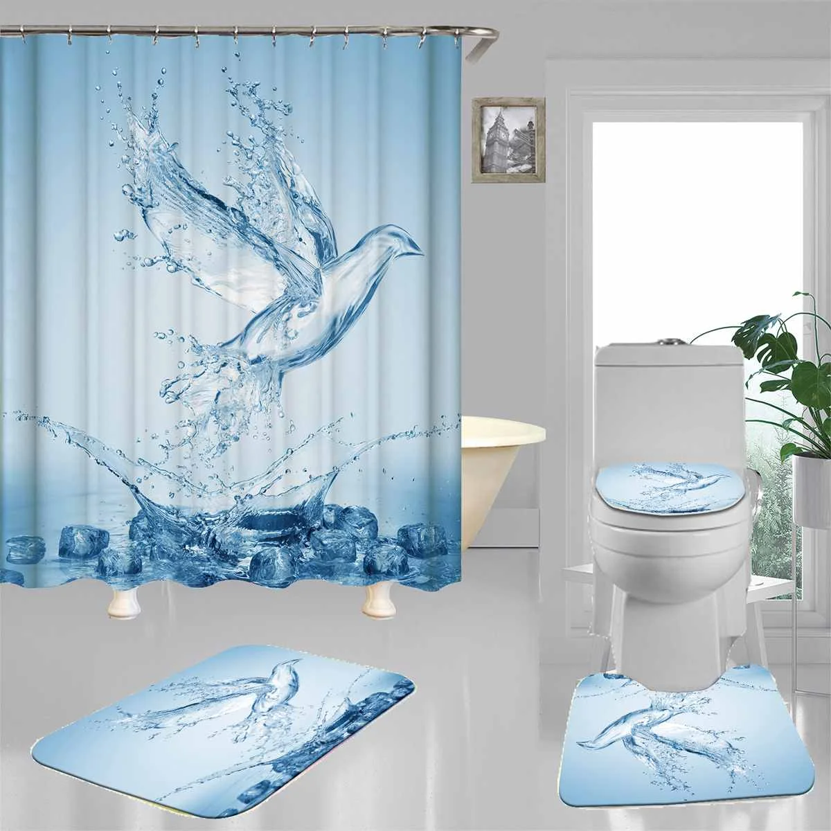 Waterproof Shower Curtain Water Bird Bathroom Set Non Slip Mats