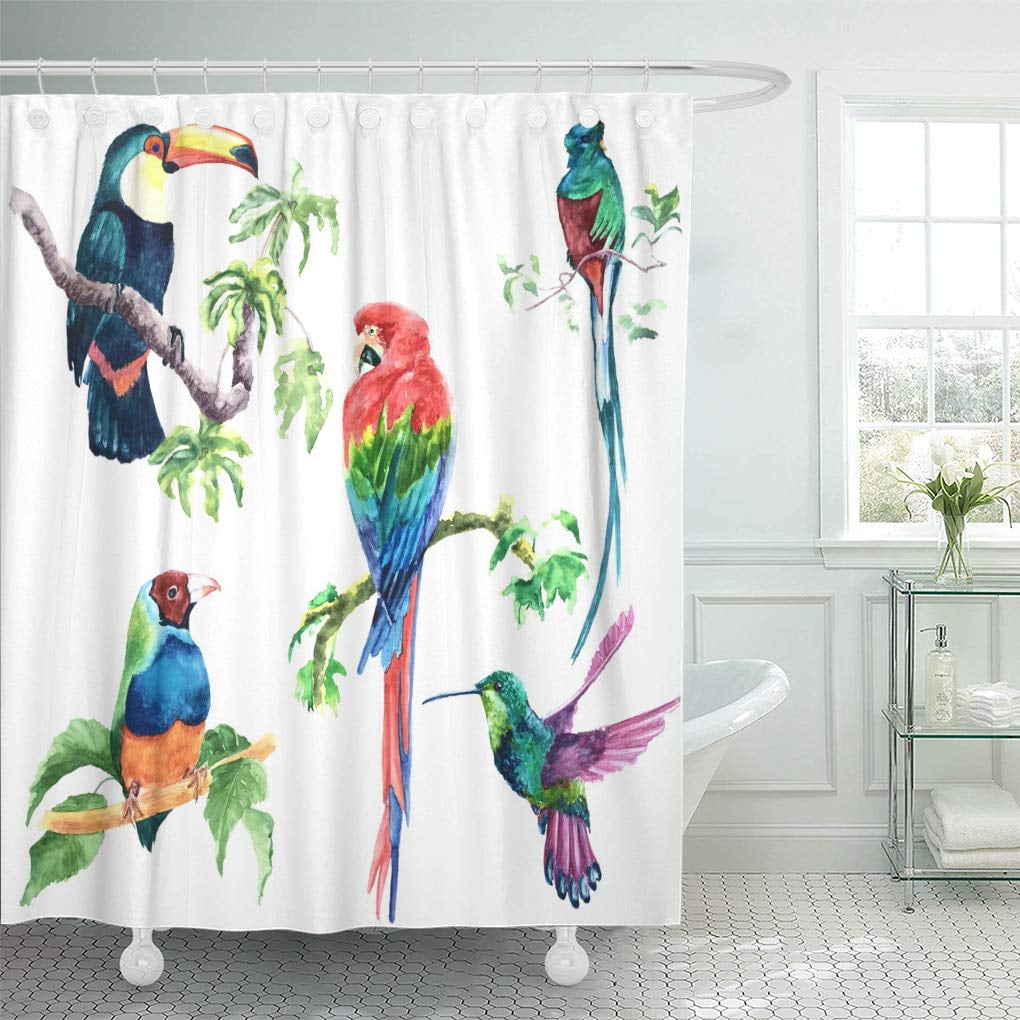Wonzom Parrot Shower Curtains With 12 Hooks For Bathroom Decor