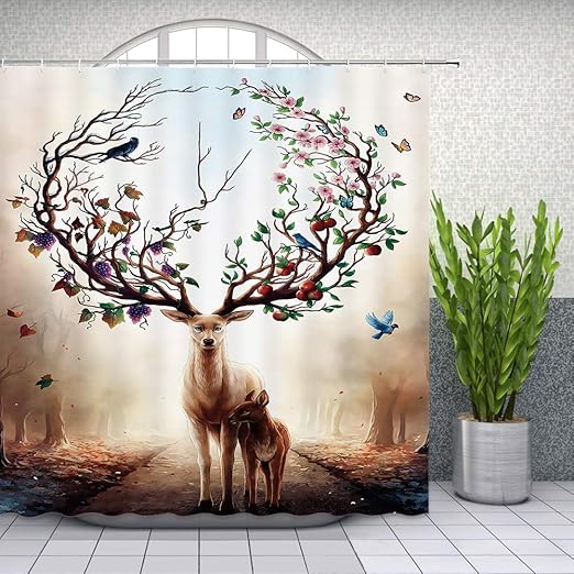 Amazon Com Lileihao Deer Shower Curtain Fantasy Forest Animal