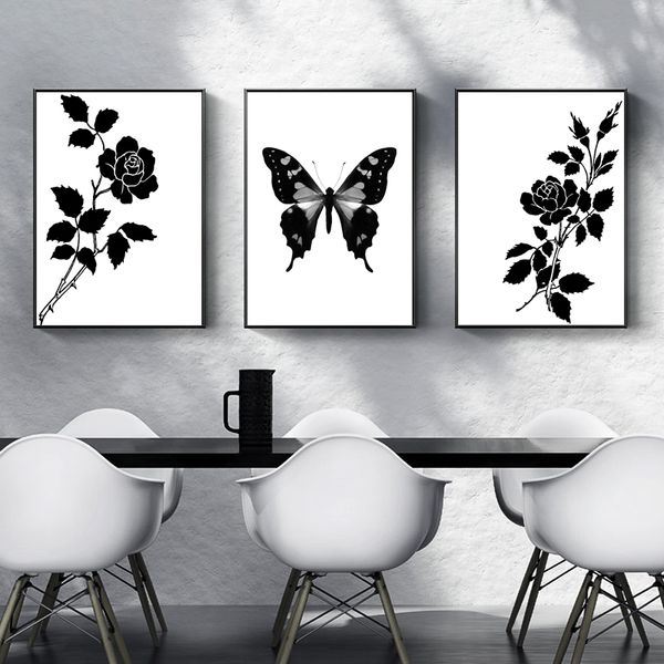 2020 Black And White Wall Decor Art Minimalist Flower Butterfly