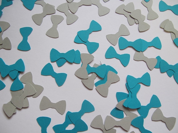 Teal And Grey Bowtie Confetti Little Man Party Decorations Etsy