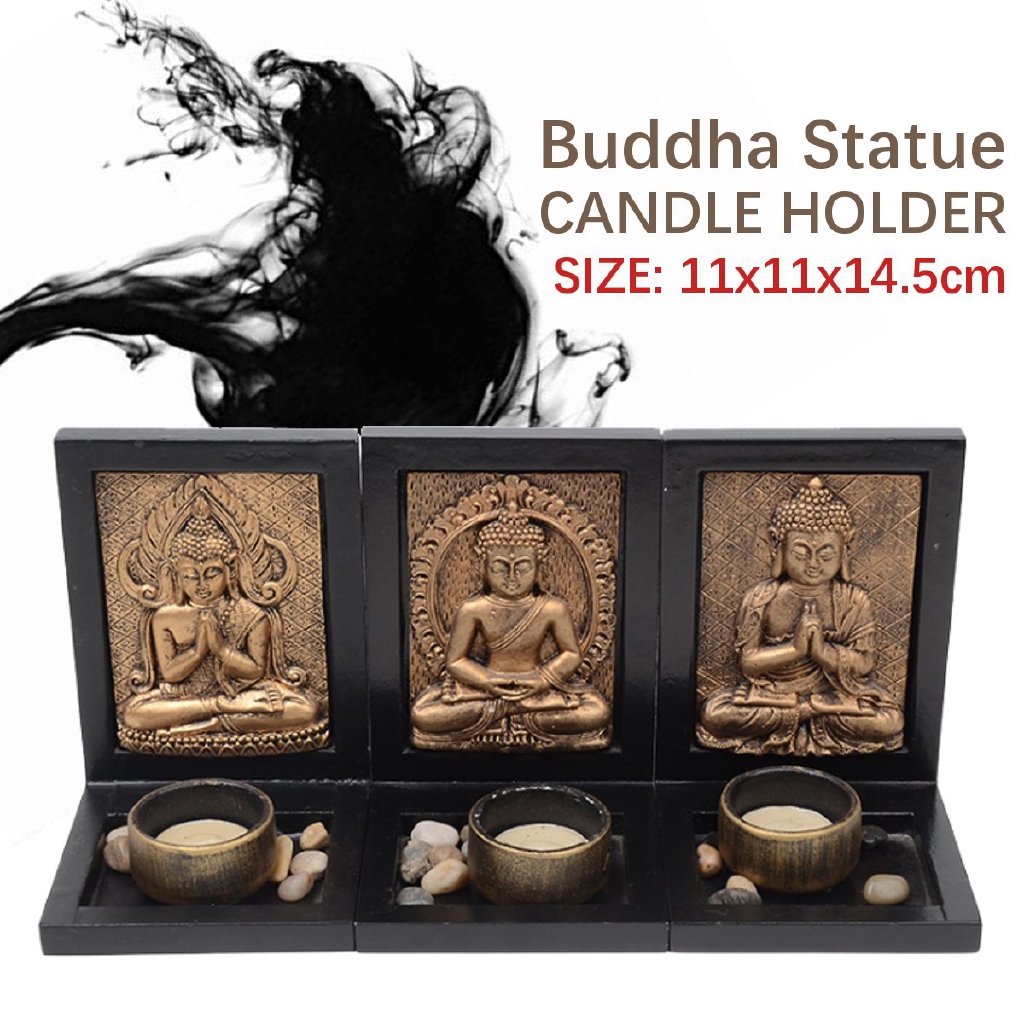 Resin Buddha Statue Candle Holder Spiritual Meditation Table