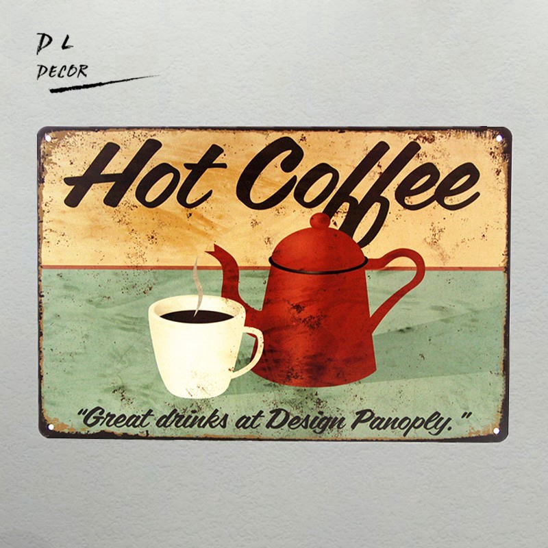 Hot Coffee Design Panoply Tin Signs Metal Decor Wall Plaque