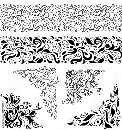 Set Of Hand Drawn Decorative Elements Seamless Borders And Corner