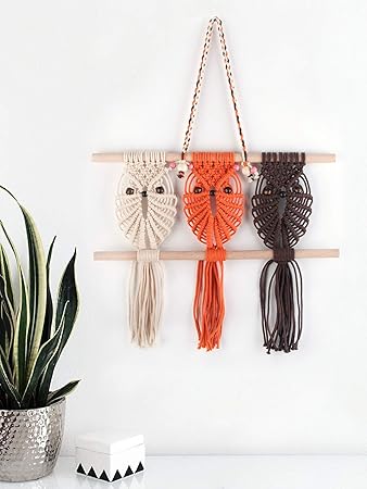 Amazon Com Three Owls Macrame Woven Wall Hanging Art Decor Cute
